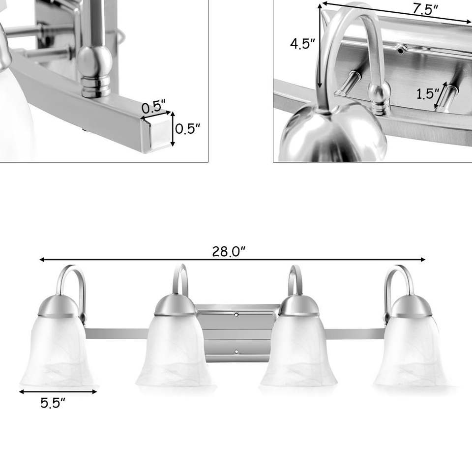 ไฟ LED สำหรับห้องน้ำ 4 ดวง สีนิกเกิลขัดเงา สำหรับให้แสงสว่างในห้องน้ำ