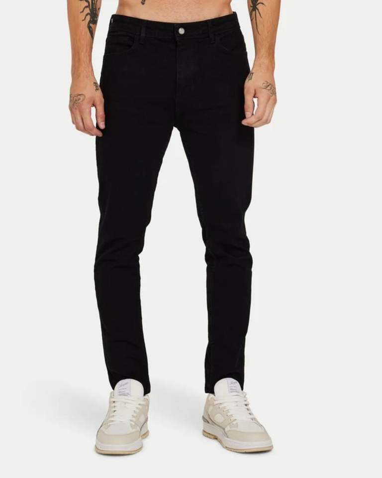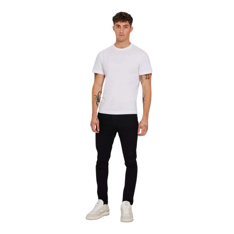 4.กางเกงยีนส์เข้ารูปสำหรับผู้ชายสีดำเอวกลางแบบสมาร์ทผ้ายืดลำลองแบบเรียบง่ายขาเรียวเล็กสำหรับใส่ในออฟฟิศจนถึงสตรีท