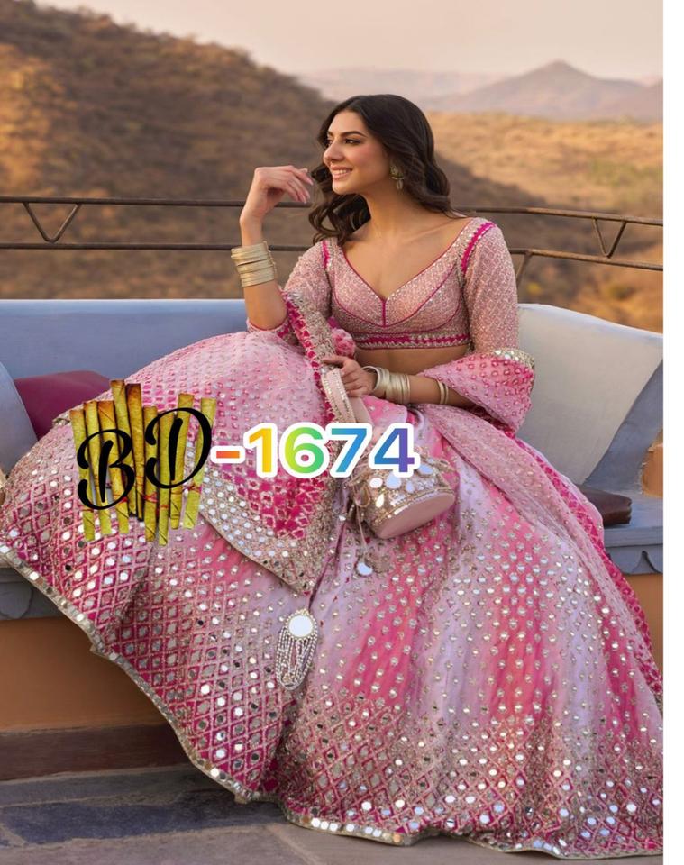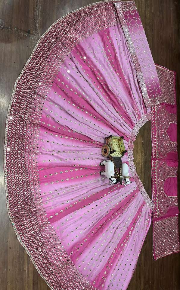 ชุดเลเฮนกาโชลีแบบดั้งเดิมผ้าจอร์เจตต์ฟ็อกซ์ทรงบาน 4 เมตร ตกแต่งด้วยงานกระจกแท้ ผ้าแคนแคนหลายชั้น เหมาะสำหรับงานแต่งงาน คุณภาพเยี่ยม