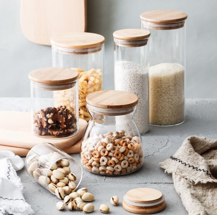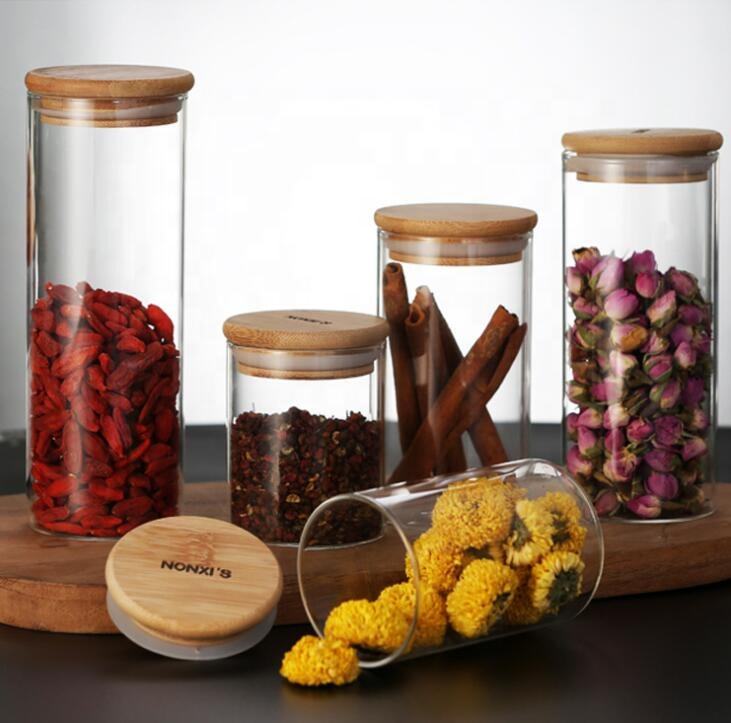 ขวดแก้วบอโรซิลิเกตปิดผนึกพร้อมฝาไม้ไผ่