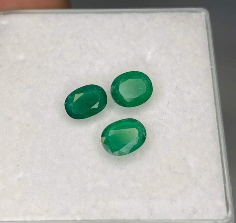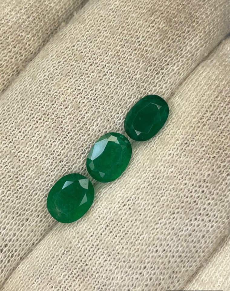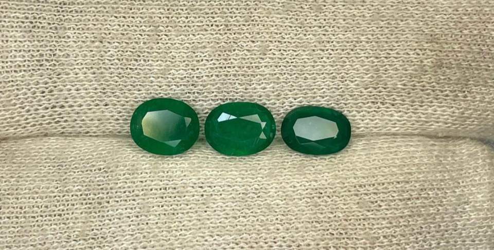 พลอยมรกตธรรมชาติจากแซมเบีย 3 เม็ด รูปทรงวงรี สีเขียว