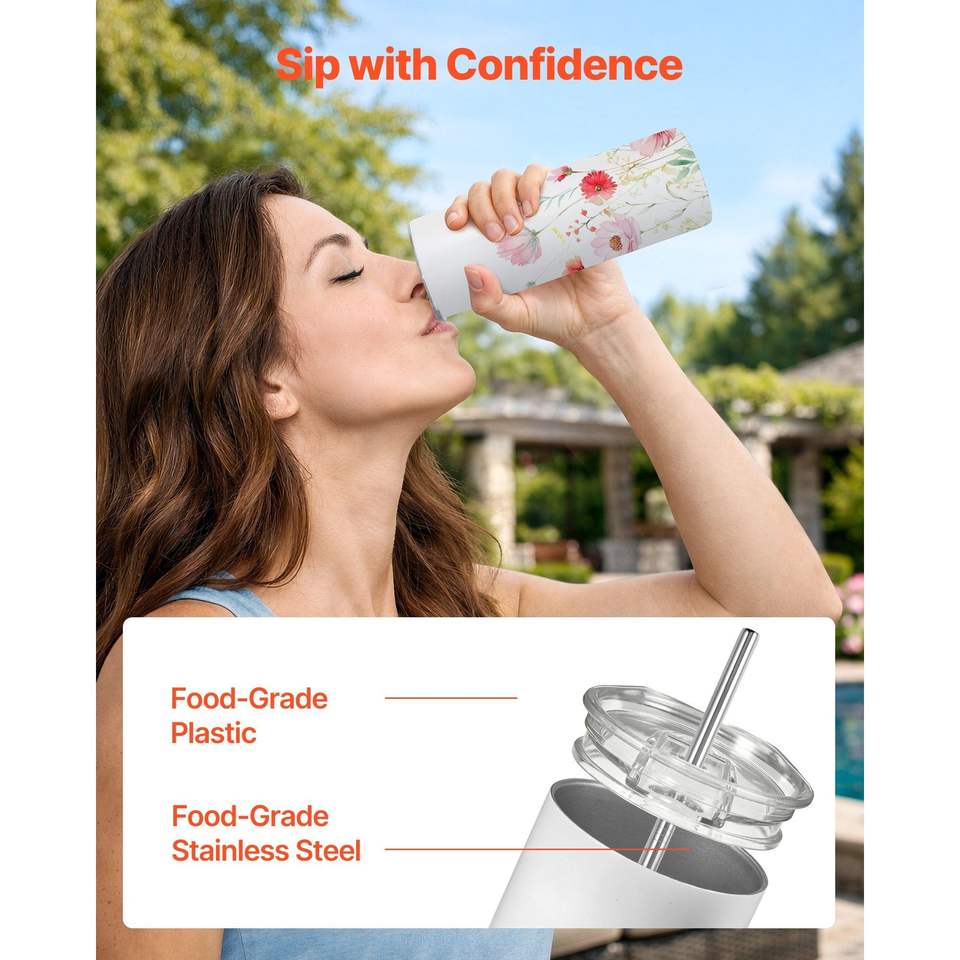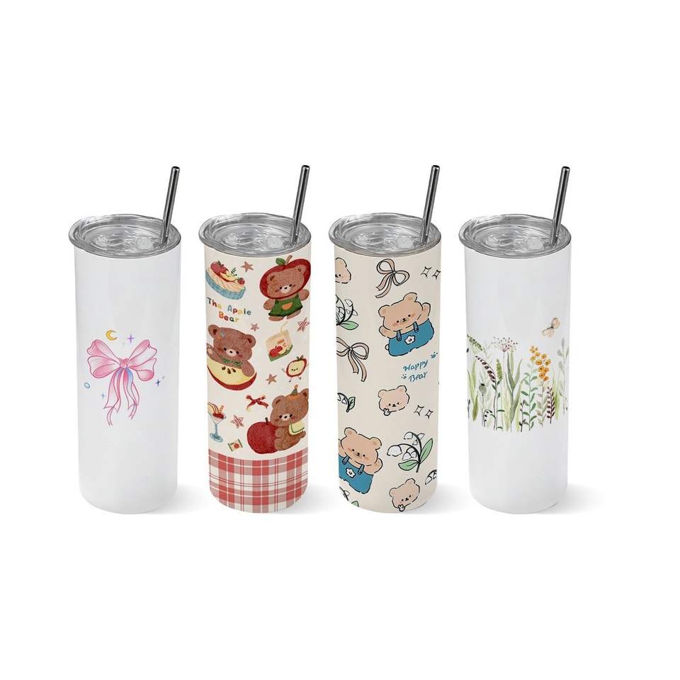 แก้วสแตนเลสแบบสุญญากาศ ขนาด 20 ออนซ์ แพ็ค 4 ใบ ดีไซน์ทรงตรงเพรียวบาง พร้อมฝาและหลอดดูด โครงสร้างผนังสองชั้น สำหรับใช้จำนวนมาก