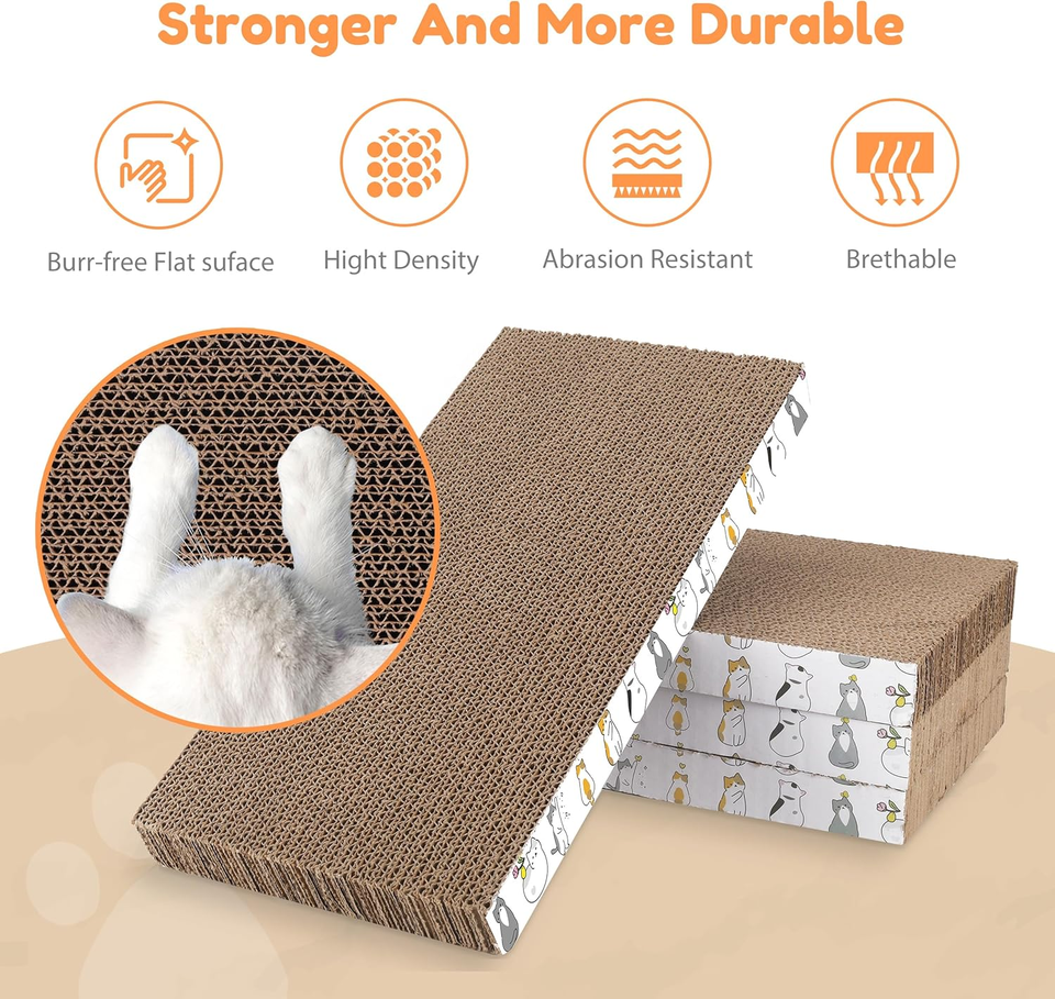 แผ่นรองข่วนแมวแบบกล่อง 4 ชิ้น, ที่ข่วนแมวทำจากกระดาษแข็งสำหรับแมวในบ้าน, ที่ข่วนแบบสองด้านพร้อมกล่องใส่แคทนิปและที่นอนแบบกำหนดเองได้