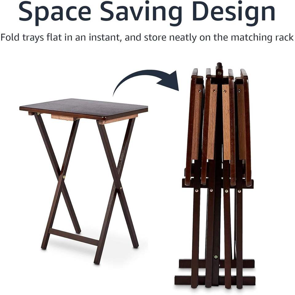 ชุดโต๊ะวางทีวีแบบพับได้ 4 ชิ้น สีเอสเพรสโซ พร้อมชั้นวางของ วัสดุไม้แข็งแรง ประหยัดพื้นที่ ขนาด 14.6"ยาว x 19"กว้าง x 26"สูง เหมาะสำหรับใช้ในห้องรับประทานอาหาร
