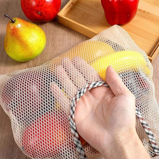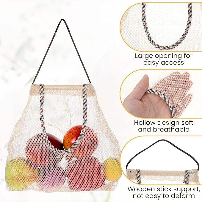 ถุงตาข่ายแขวนเก็บของ 4 ชิ้น, ถุงใส่ผลไม้แบบใช้ซ้ำได้, ถุงตาข่ายพกพาสำหรับใส่ผลไม้, ผัก, หัวหอม
