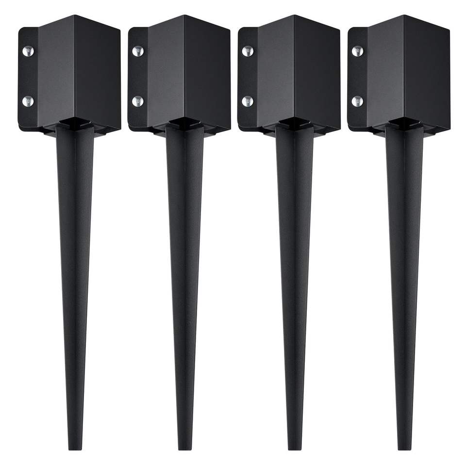 เสายึดรั้วเคลือบผงโลหะสีดำแพ็ค4ชิ้นขนาดเส้นผ่าศูนย์กลางด้านนอก24x4x4นิ้ว (เส้นผ่านศูนย์กลางภายใน3.5x3.5นิ้ว)