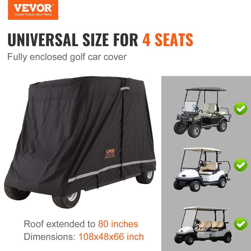 ผ้าคลุมรถกอล์ฟกันน้ำกันฝุ่นกันน้ำสำหรับผู้โดยสาร4คนผ้าคลุม600D โพลีเอสเตอร์คลุมทั้งเครื่องสามประตูซิปสีดำอเนกประสงค์