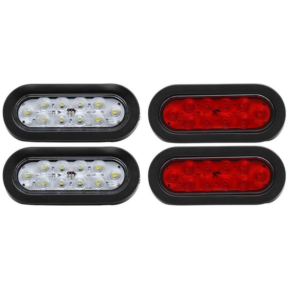 ไฟท้ายรถพ่วงรูปวงรี LED ขนาด 6 นิ้ว 10 ดวง จำนวน 4 ชิ้น พร้อมไฟเบรก 12V 2 สีแดง 2 สีขาว