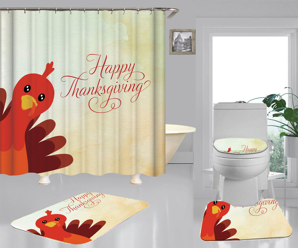 ชุดห้องน้ำ4ชิ้นพร้อมม่านอาบน้ำและพรมคลุมฝาห้องส้วมเสื่ออาบน้ำศิลปะวันขอบคุณพระเจ้าชุดม่านอาบน้ำสำหรับห้องน้ำ