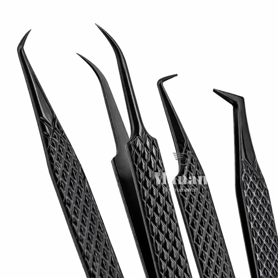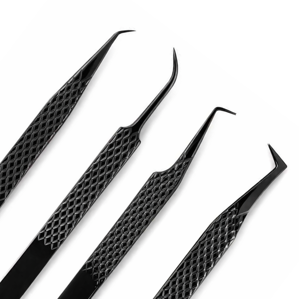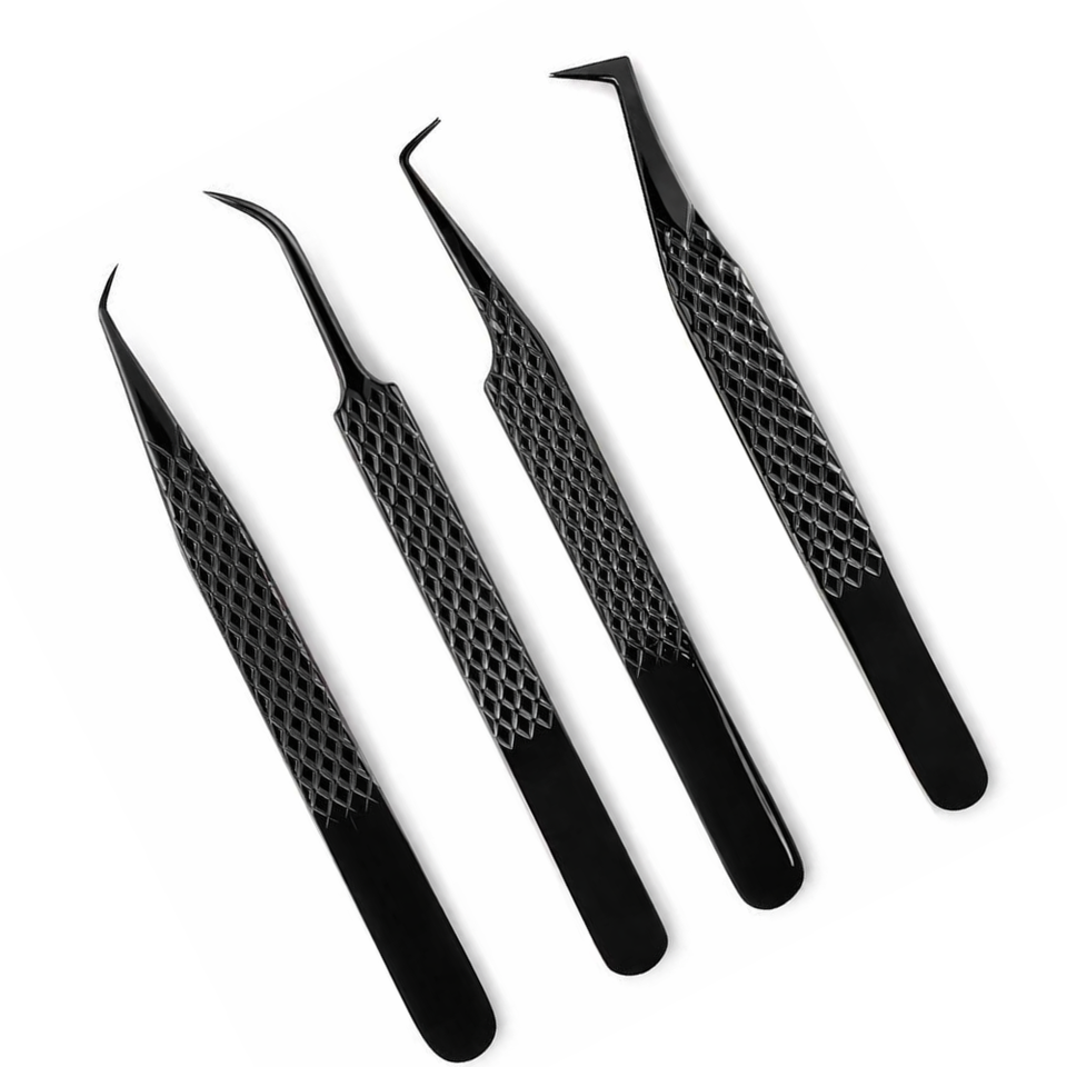 ชุดแหนบต่อขนตา 4 ชิ้น ชุดอุปกรณ์ต่อขนตาแบบมืออาชีพ แหนบโค้ง แหนบปลายเฉียง แหนบสแตนเลสอย่างดี ป้องกันการลื่น