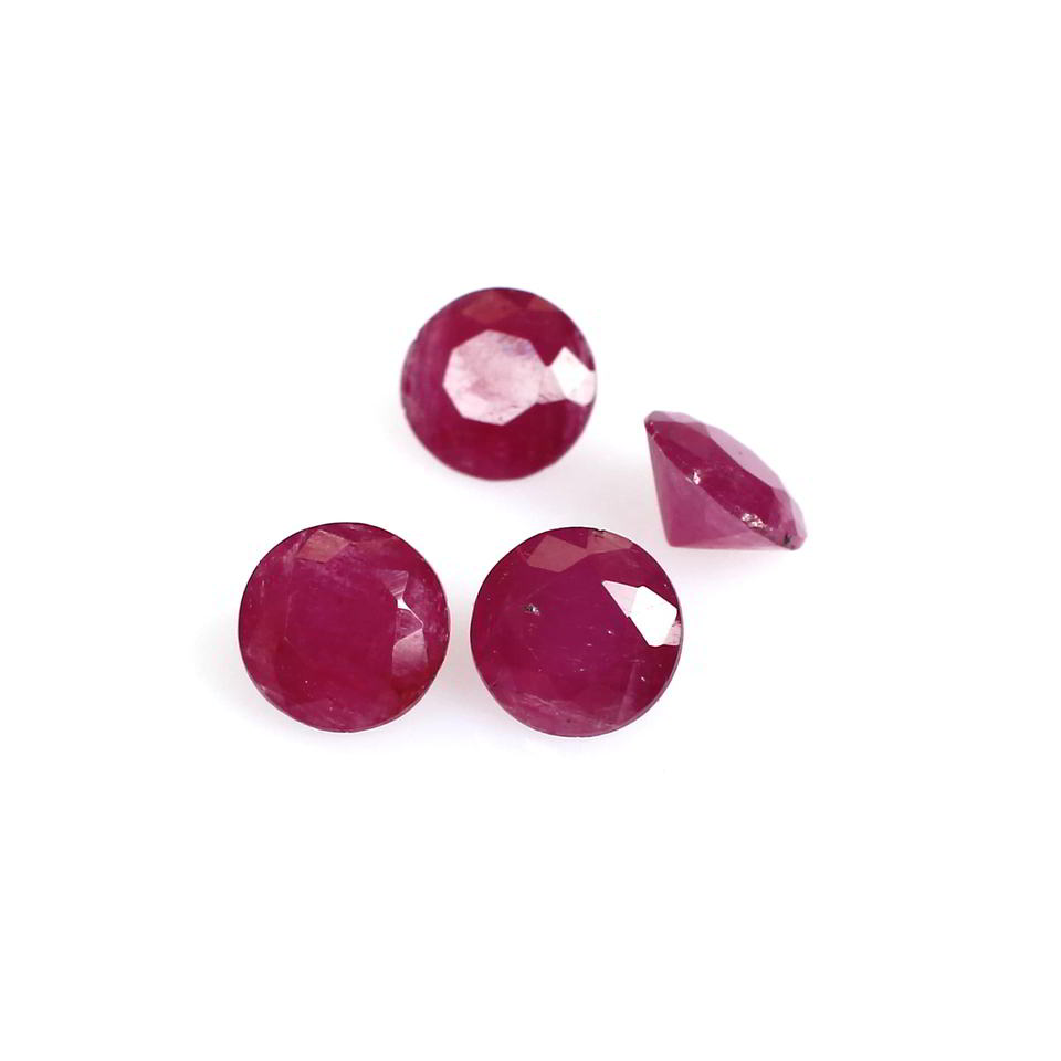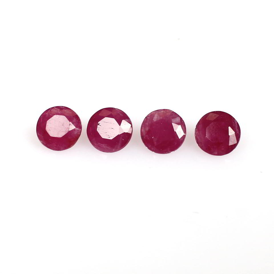 ทับทิมธรรมชาติ 4 ชิ้น ขนาด 5 มม. ทรงกลมเจียระไนแบบเพชร น้ำหนัก 2.2 กะรัต