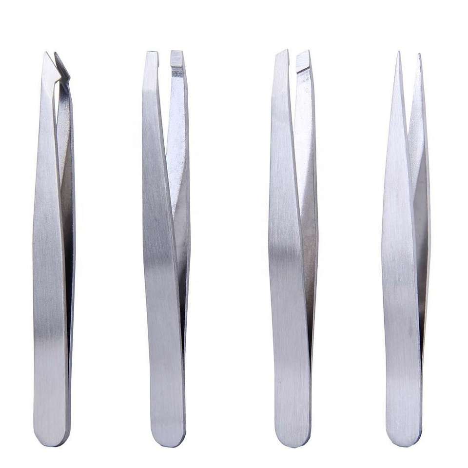 ชุดแหนบถอนขนคิ้วสแตนเลสแบบมืออาชีพ 4 ชิ้น พร้อมซองใส่ รับสกรีนโลโก้ ทนทาน เป็นมิตรกับสิ่งแวดล้อม น้ำหนักเบา ใช้ซ้ำได้ ปลายแหนบทรงเหลี่ยม