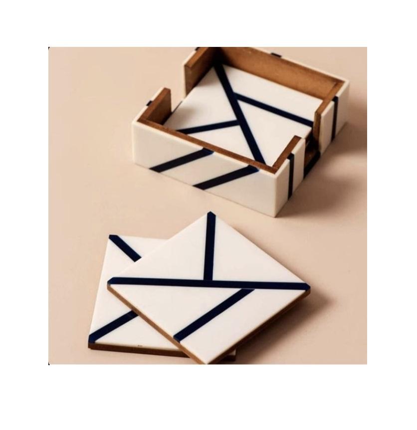 เซ็ตไม้ & เรซิ่นสี่เหลี่ยมขนาด4X4นิ้ว,เซ็ต4ชิ้นทำจากไม้ใช้รองแก้วเสิร์ฟน้ำชาแผ่นรองจานบนโต๊ะทานข้าว