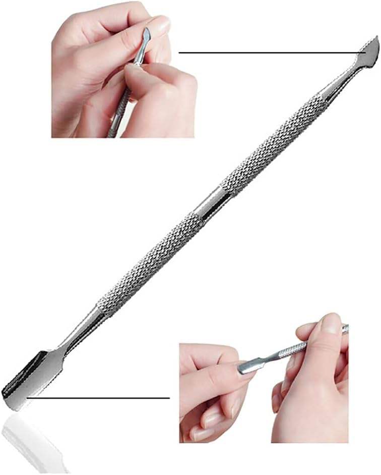 4 Pcs Silver Dual Ended Stainless Steel Cuticle Pusher and Spoon Nail Cleaner Cuticle Remover Manicure Pedicure Nail Tools