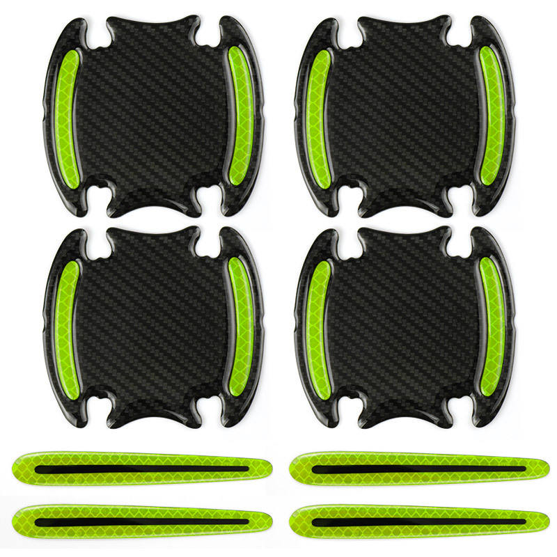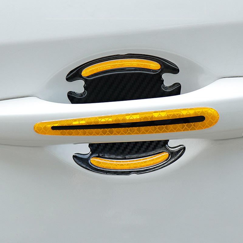 4ชิ้นสีเงินสะท้อนแสงมือจับประตูรถแถบป้องกันการชนกันรูปลอกผู้บุกเบิกการตกแต่งรถยนต์ที่มีการป้องกันที่ทันสมัย