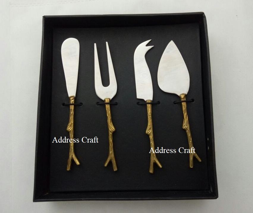 ชุดมีดหั่นชีสสเตนเลสสตีล4ชิ้นอุปกรณ์ตัดเครื่องเงินอุปกรณ์หั่นชีสส้อมมีดสเปรดเดอร์