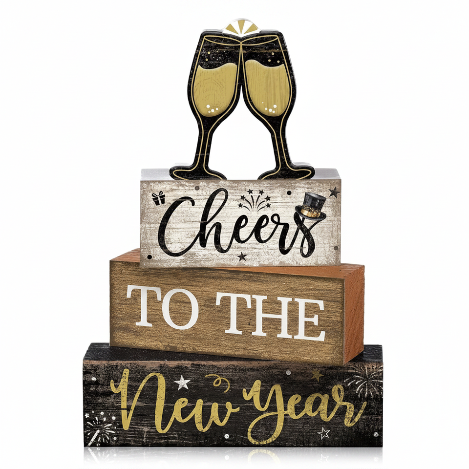ชุดตกแต่งถาดวางของแบบหลายชั้นสำหรับฤดูหนาว 4 ชิ้น ของตกแต่งโต๊ะปีใหม่ ของตกแต่งแก้วไวน์ไม้ ของตกแต่งงานเลี้ยงปีใหม่ ของตกแต่งโต๊ะ