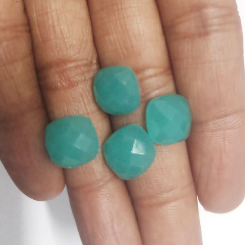 ชื่อผลิตภัณฑ์:Aqua Chalcedony 10x10mm เบาะเหลี่ยมเพชรพลอย Cab