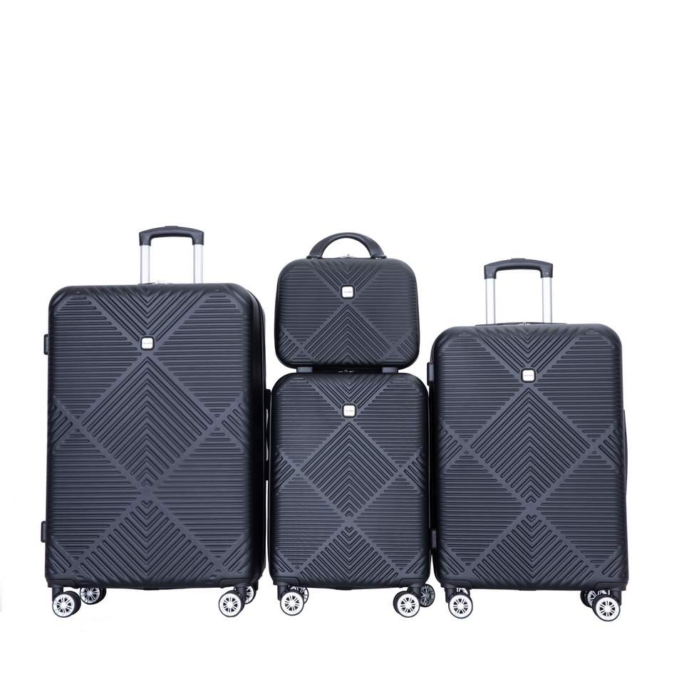 4-Piece ABS Lightweight 14 Inch Makeup Box Aircraft Wheels (14/20/24/28) Black Luggage Sets
