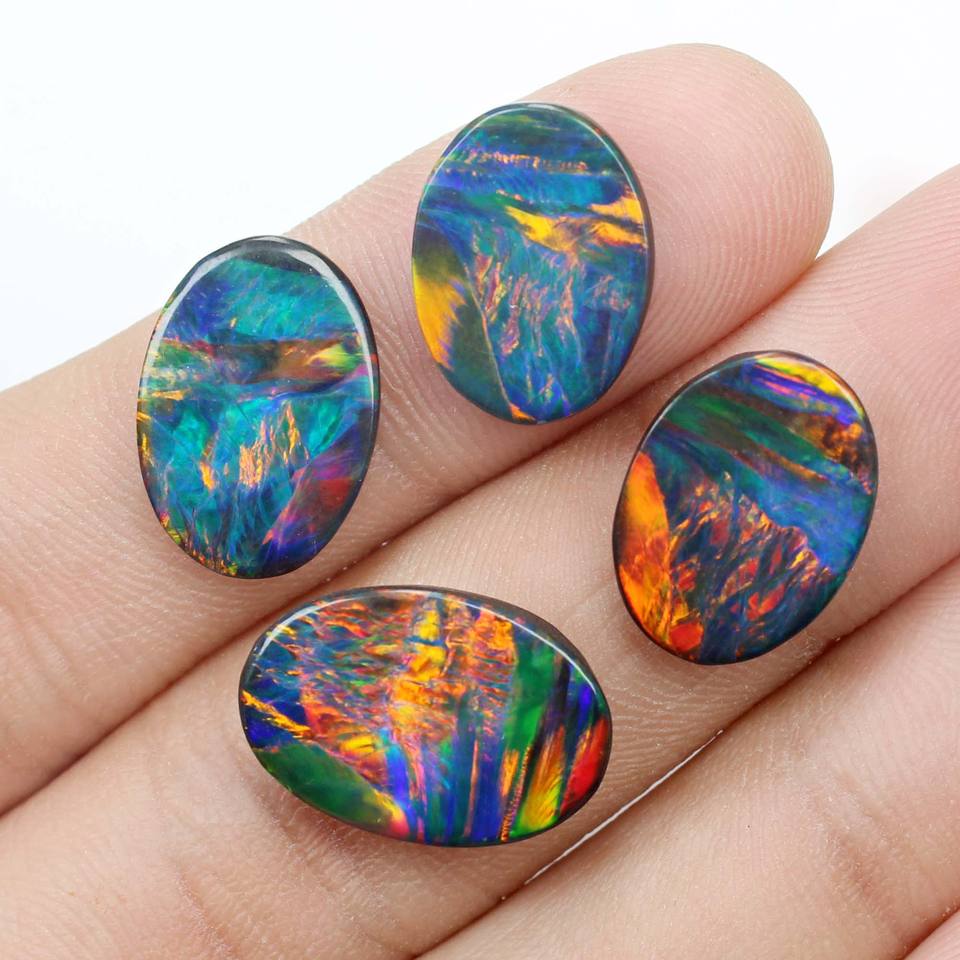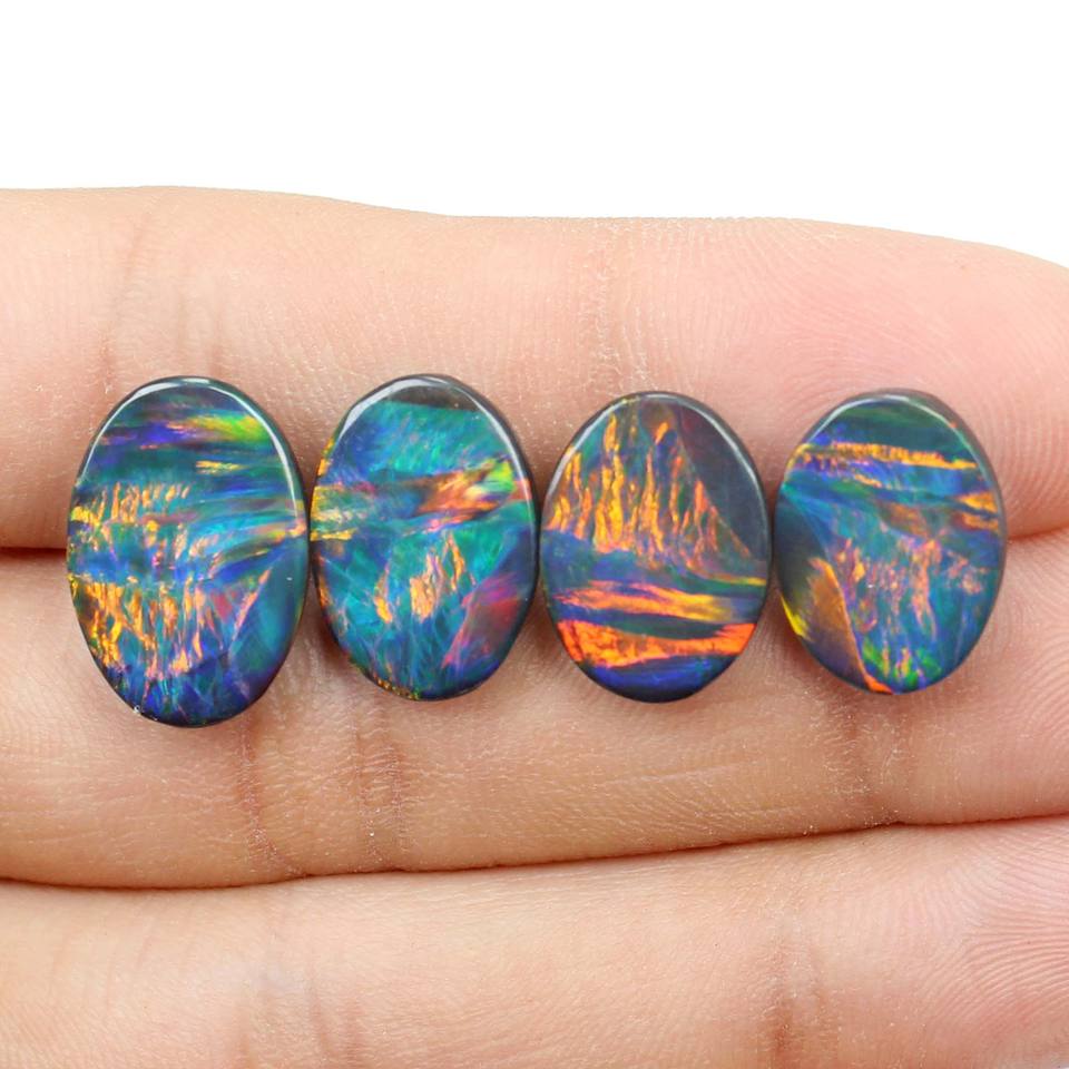 4ชิ้น Bello สังเคราะห์โอปอลสองเท่า Cabochon รูปไข่คุณภาพสูงสุดขายส่งผู้ผลิตราคาโรงงาน