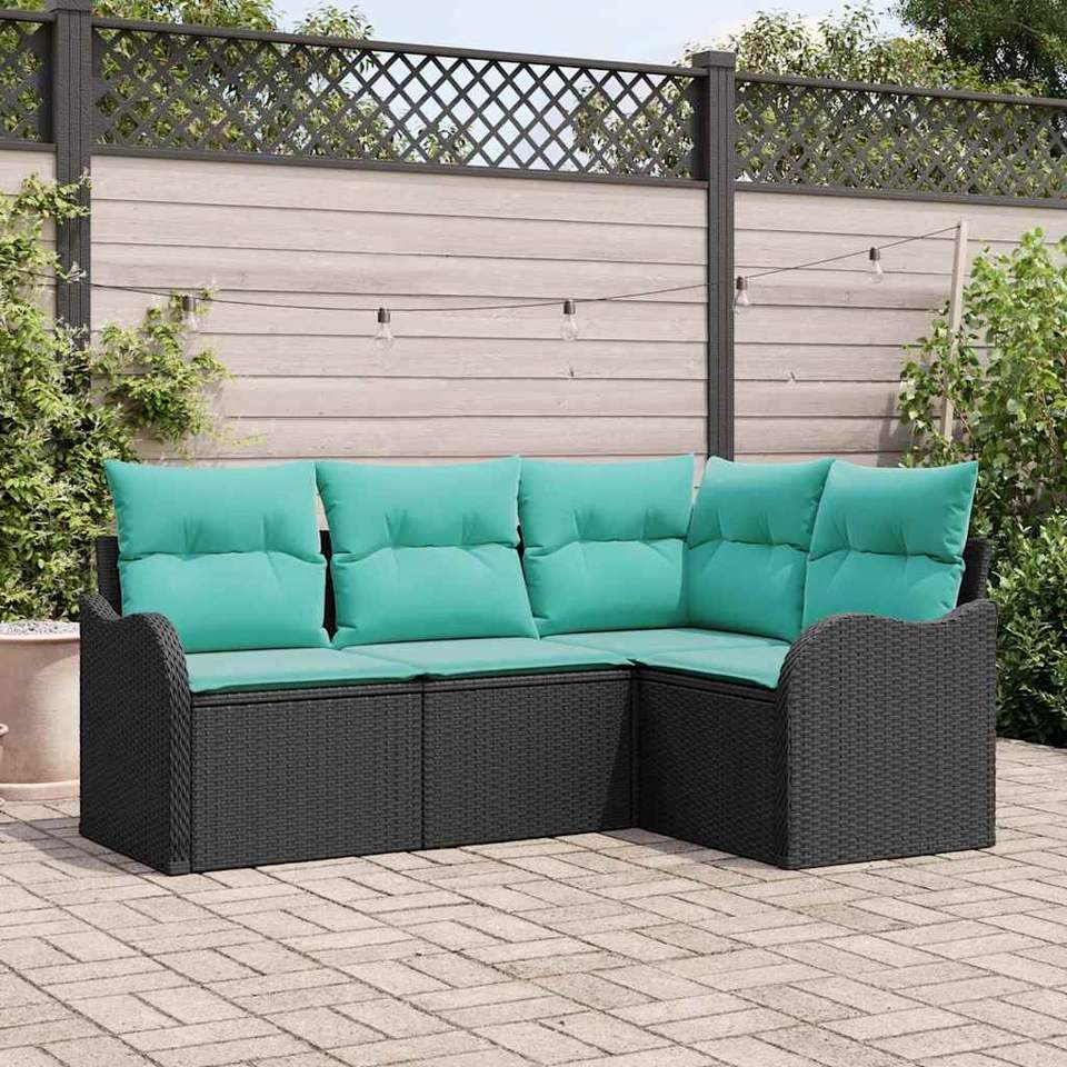 ชุดโซฟาสวนหวายโพลีสีดำ 4 ชิ้นพร้อมเบาะรองนั่ง