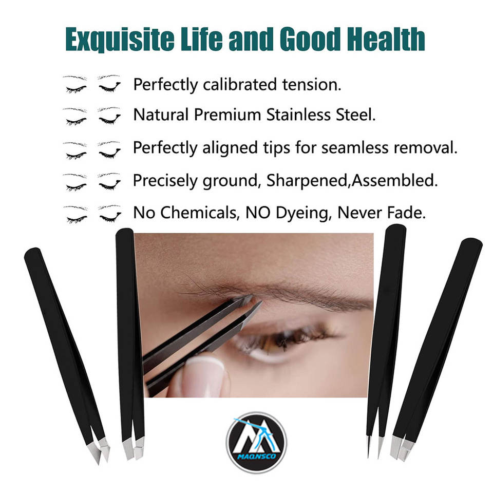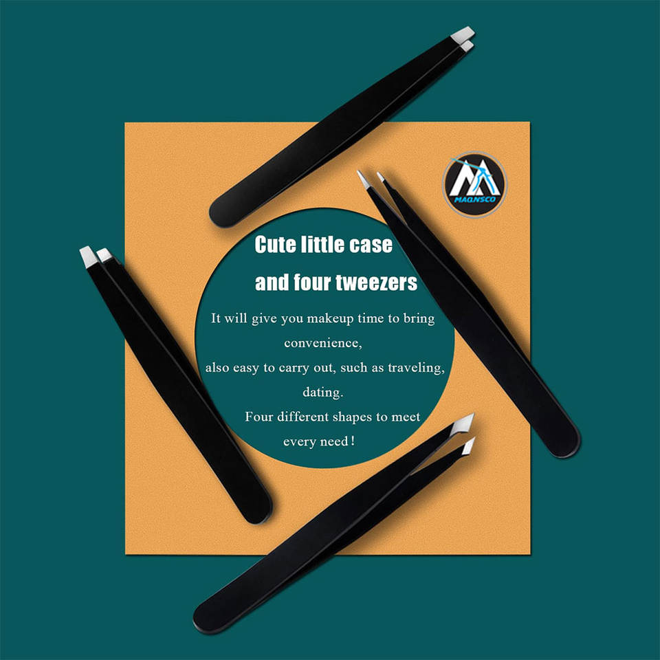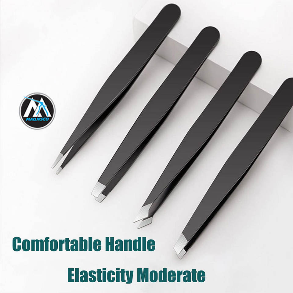 ชุดแหนบสเตนเลสสตีลสีดำ4ชิ้นพร้อมกระเป๋าหนังแหนบปลายแหลมแบนและมุม