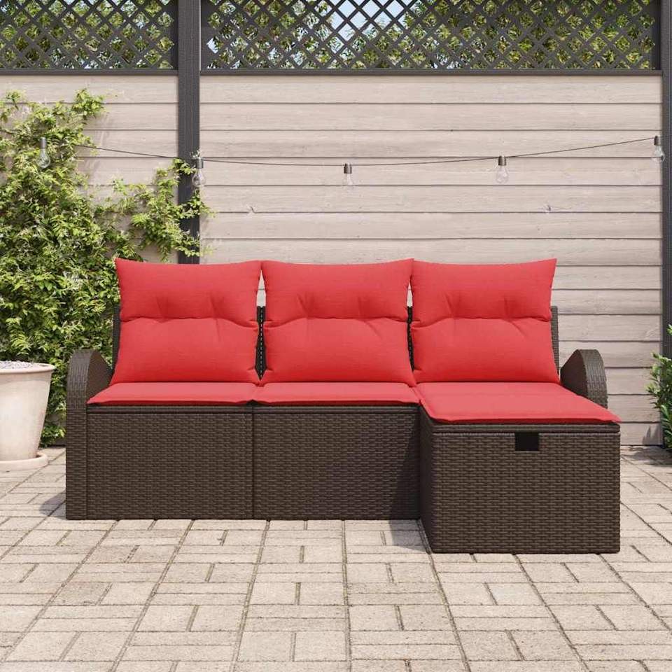 ชุดสวนหวายโพลีสีน้ำตาลและสีแดง 4 ชิ้น พร้อมเบาะรองนั่งแบบแมนนวล ชุดโซฟาสีน้ำตาลและสีแดง