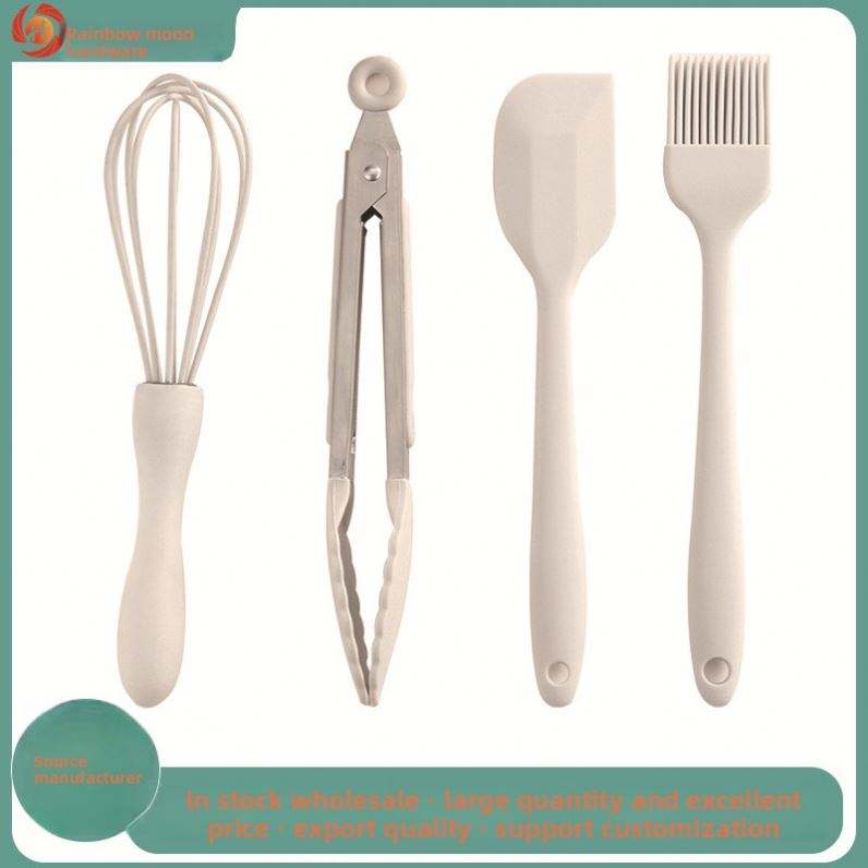 ชุดเครื่องมือทำขนมอบขนาดเล็กครีมซิลิโคน4ชิ้นชุดเครื่องล้างจานปลอดภัยเตาอบที่ปลอดภัยอุปกรณ์ในครัวที่หนีบอาหารมีดโกน