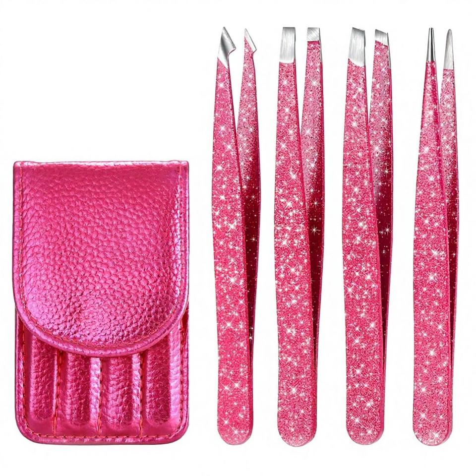 4 Piece Customized Finish Men Women Use High Quality Durable Lightweight Slanted Stainless Steel Classical Eyebrow Tweezers