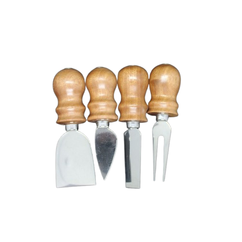 ชุดมีดชีสขนาดเล็ก 4 ชิ้น พร้อมด้ามไม้ คุณภาพสูง ทำจากสแตนเลส ใช้สำหรับหั่นชีสและทาเนยบนเขียง