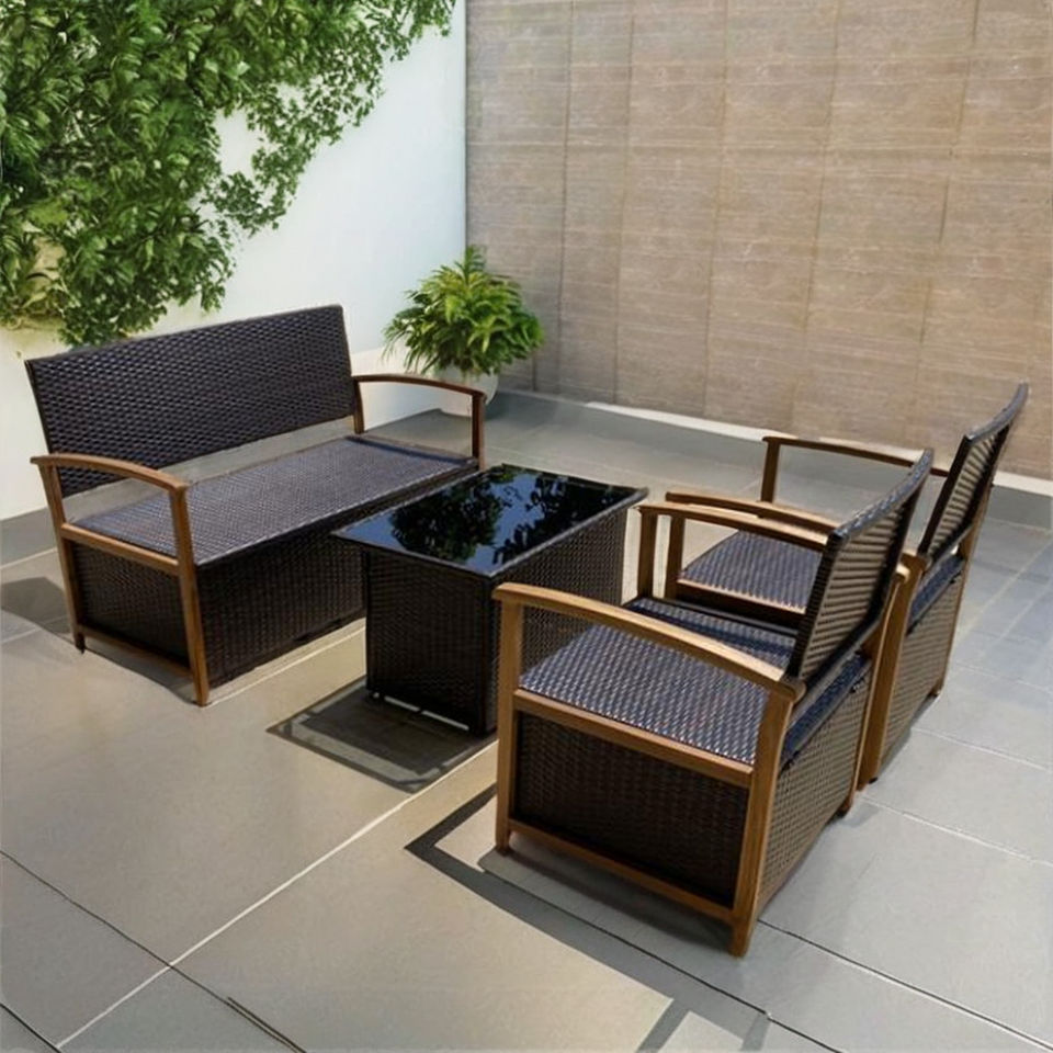 ชุดเฟอร์นิเจอร์ไม้อะคาเซียหวายสีน้ำตาลทันสมัย4ชิ้นสำหรับห้องนั่งเล่นวิลล่าและโซฟาไม้สักกลางแจ้งสำหรับโรงแรมและสวน