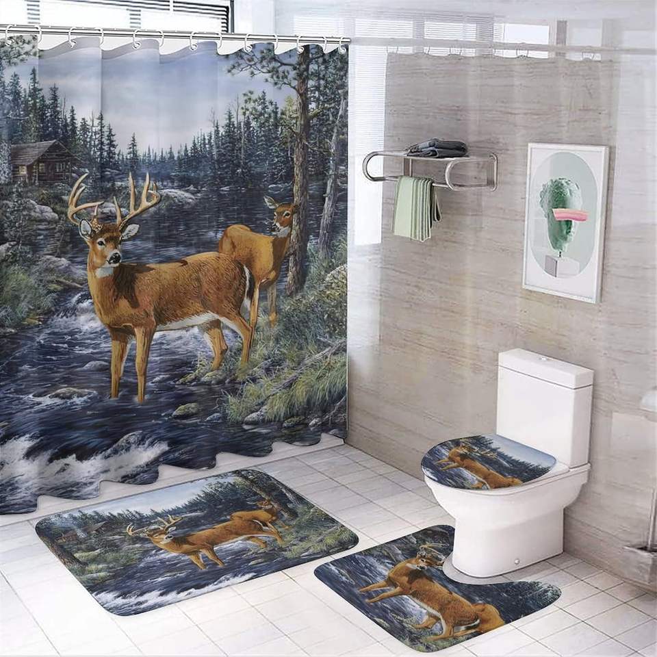 ชุดม่านอาบน้ำกันลื่น4ชิ้นพร้อมฝาปิดชักโครกพรมห้องน้ำห้องโดยสารน้ำมันสัตว์ป่าอุปกรณ์ในห้องน้ำ