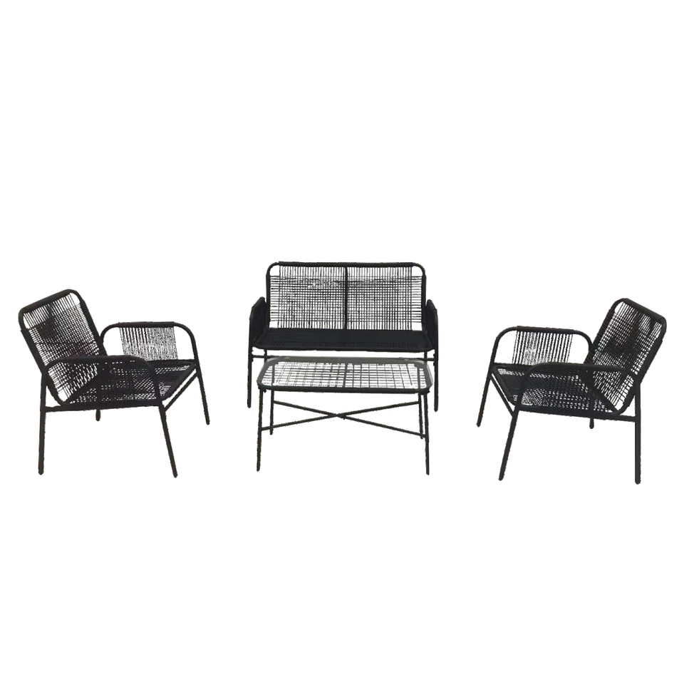 ชุดเฟอร์นิเจอร์หวาย PE 4ชิ้นโซฟากลางแจ้งพร้อมเบาะซักได้และโต๊ะกระจกนิรภัย