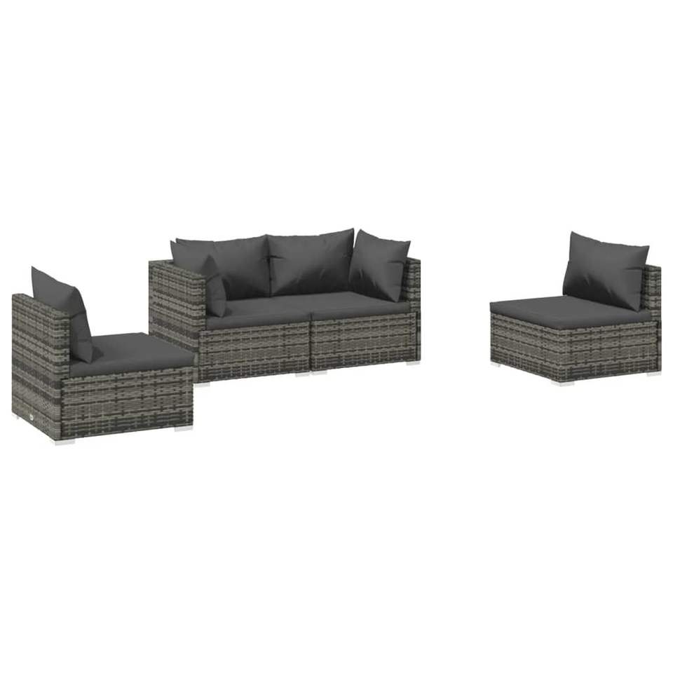 เซ็ตเลานจ์ลานโพลีหวายสีเทา4ชิ้นพร้อมเบาะรองนั่งแสนสบาย