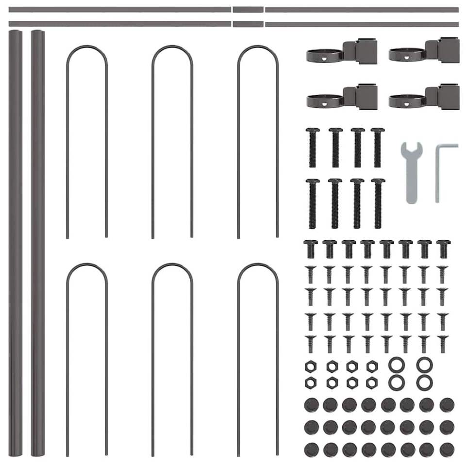 รั้วสวนเหล็กเคลือบสีฝุ่น 4 ชิ้น สีเทา ขนาด 22.31 x 1.97 ฟุต อุปกรณ์ทำสวนคุณภาพดี