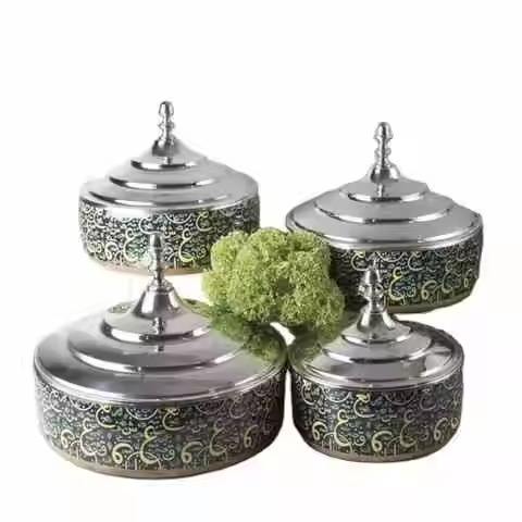 ชุดหม้อปรุงอาหารพิมพ์ลาย4ชิ้นที่มีดีไซน์ทันสมัยเหมาะสำหรับการรับประทานอาหารในห้องครัวและตกแต่งอาหารเสิร์ฟใช้ในอินเดีย
