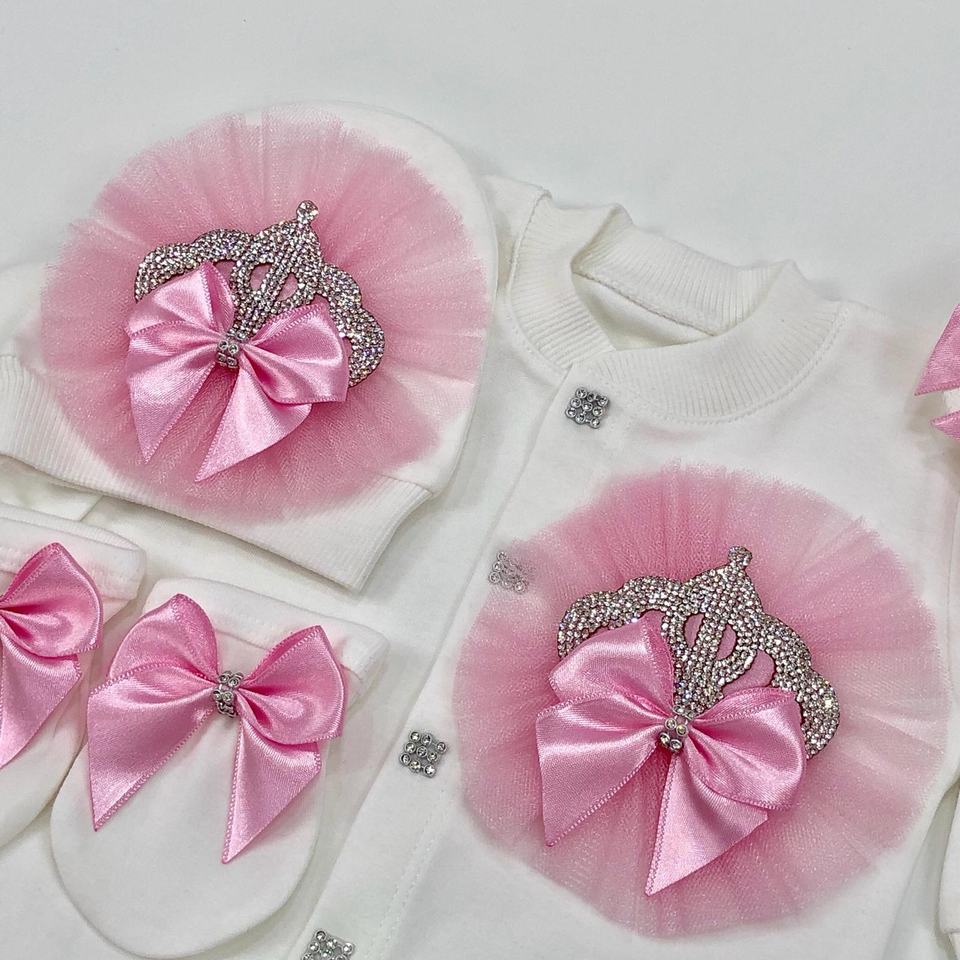 ชุดรอมเปอร์ผ้าฝ้ายถักแขนยาวสำหรับเด็กผู้หญิงผ้าฝ้าย100% 4ชิ้นเสื้อผ้าตามสั่ง