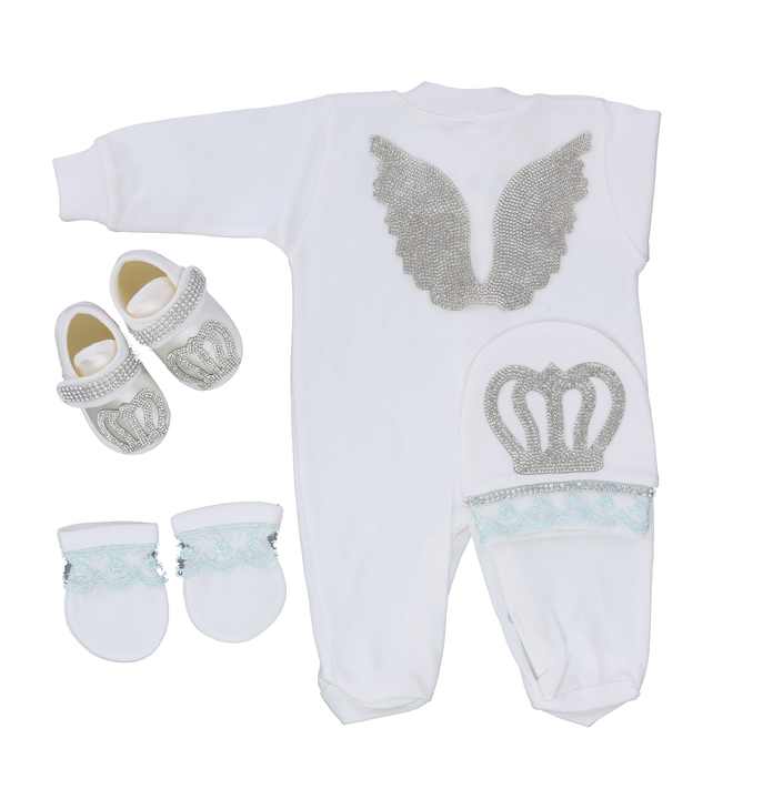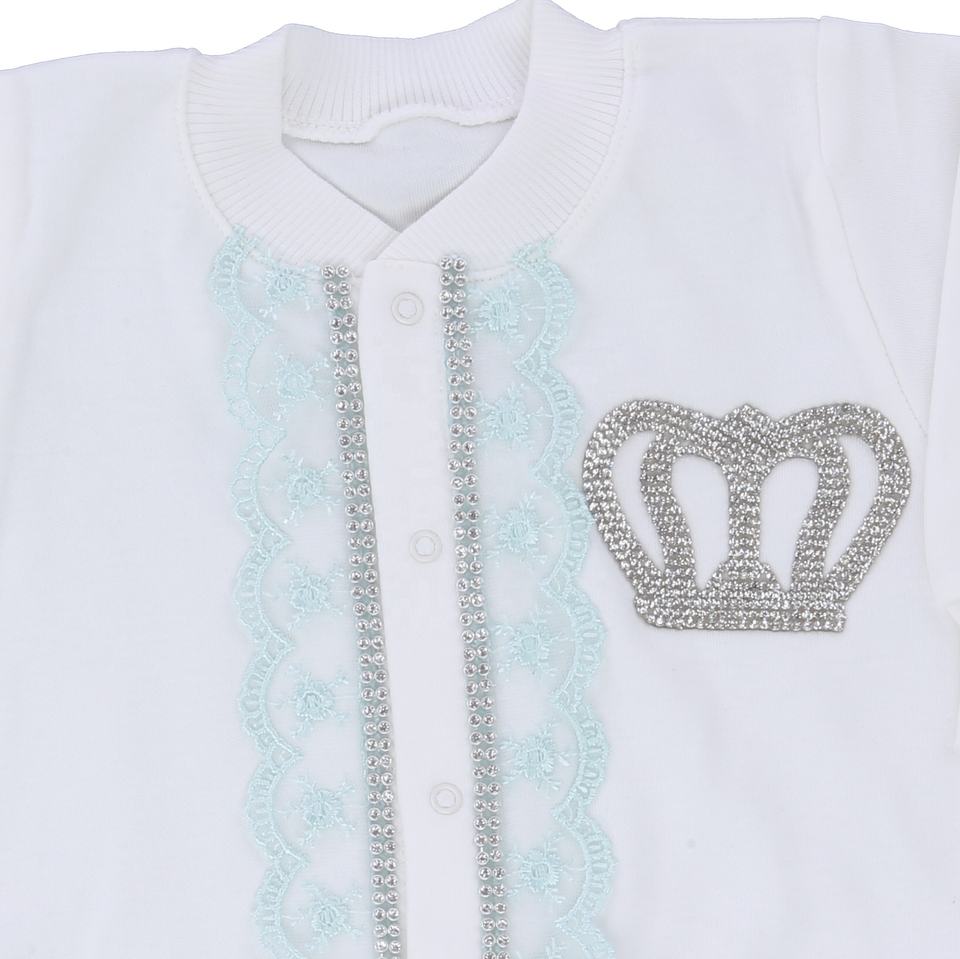 4ชิ้นผ้าฝ้าย100% ถักแขนยาวไม้ไผ่แรกเกิดการออกแบบใหม่ขายส่งที่กำหนดเองมิ้นท์ลูกไม้เทวดาทารก Romper ชุด