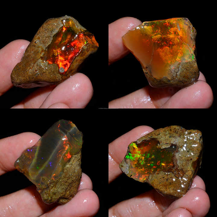 โอปอลเอธิโอเปียเกรด AAA แท้ 100% แบบหยาบ 4 ชิ้น คุณภาพระดับ Welo Fire Oily ได้รับการรับรองจากผู้ตรวจสอบบุคคลที่สาม สำหรับทำเครื่องประดับ