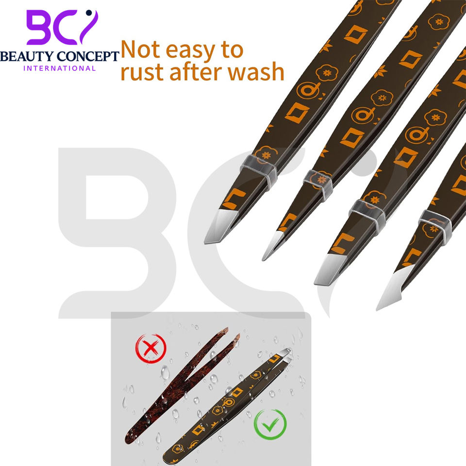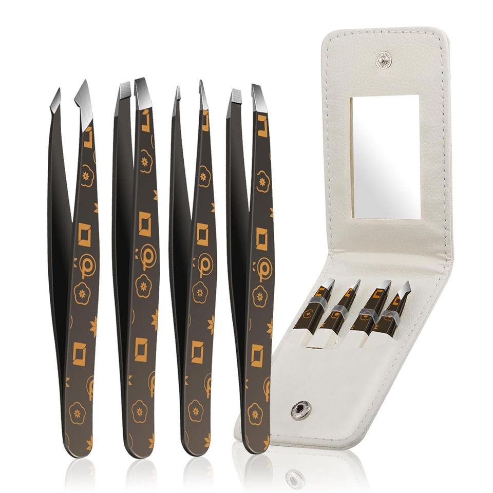 แหนบคิ้วสแตนเลสปลายแหลมและเอียง4ชิ้น