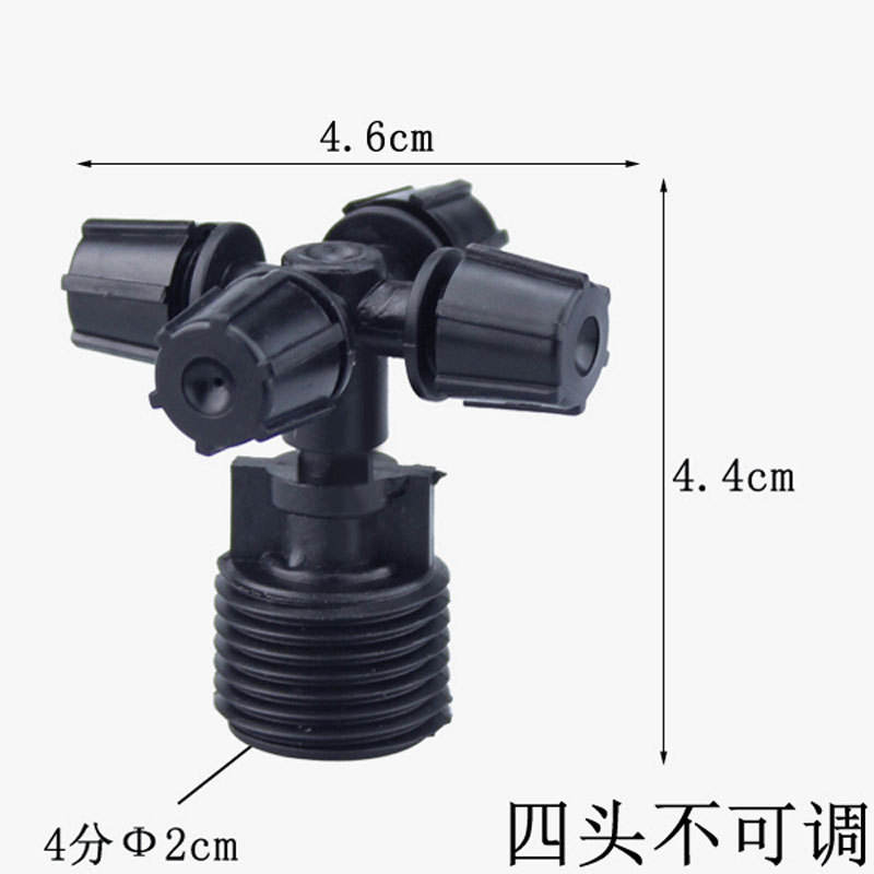 หัวฉีดพลาสติก 4 หัวแบบ 4 จุด สำหรับพ่นละอองน้ำ ใช้สำหรับทำความเย็น ฆ่าเชื้อ ป้องกันฝุ่นละออง สนามหญ้า สวน ฟาร์มปศุสัตว์