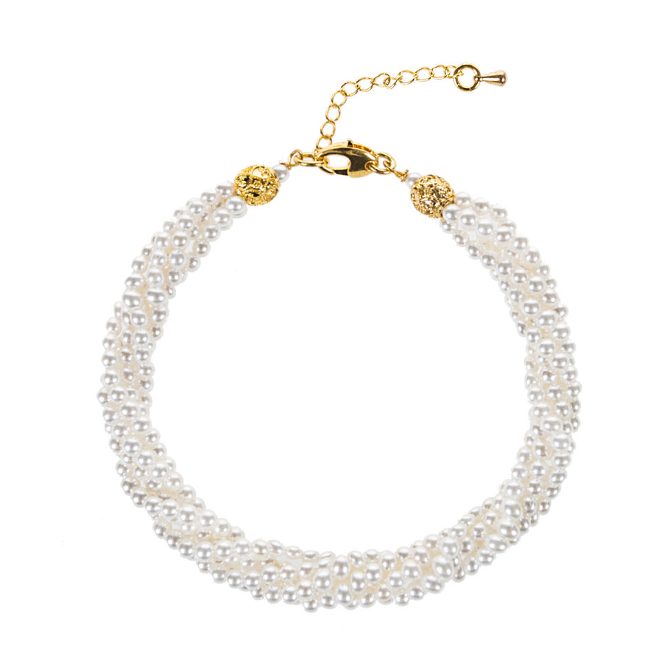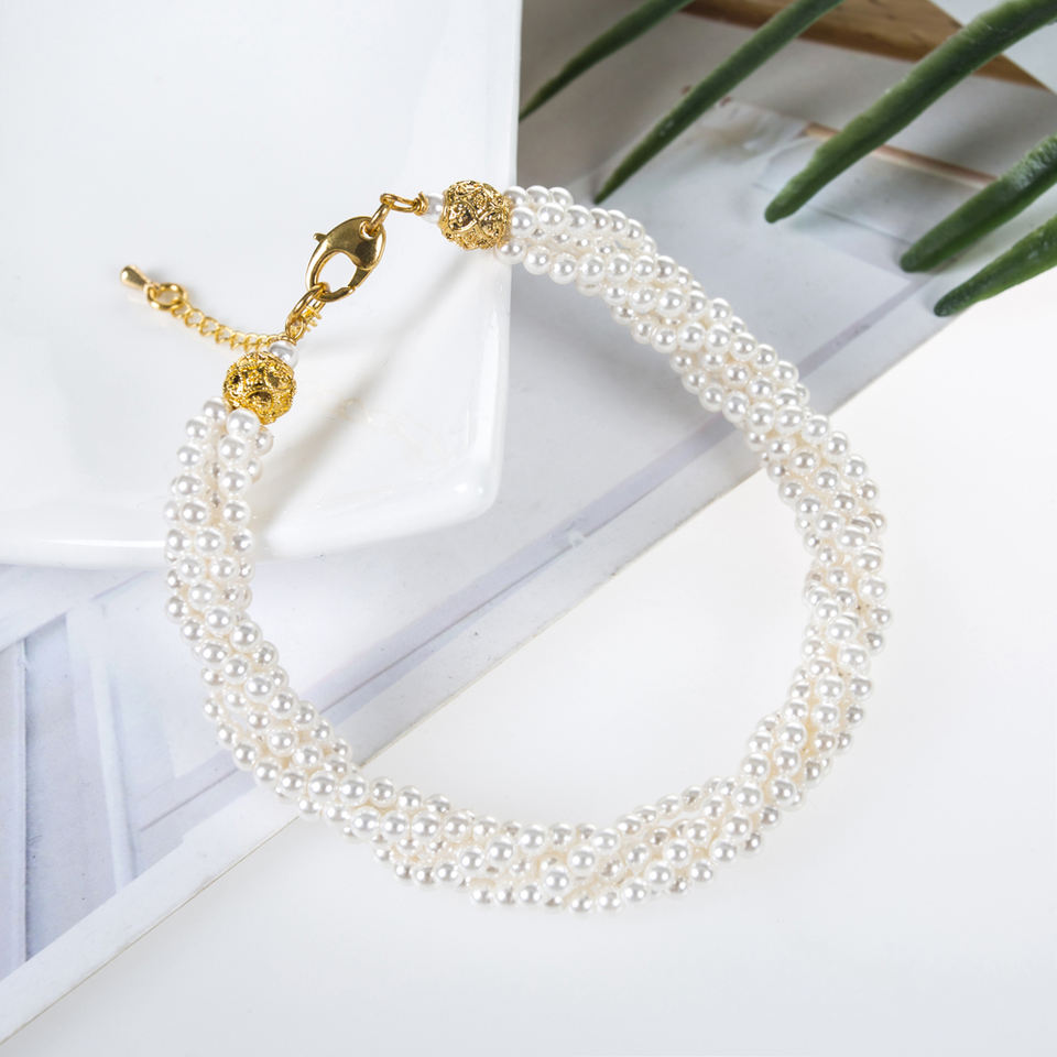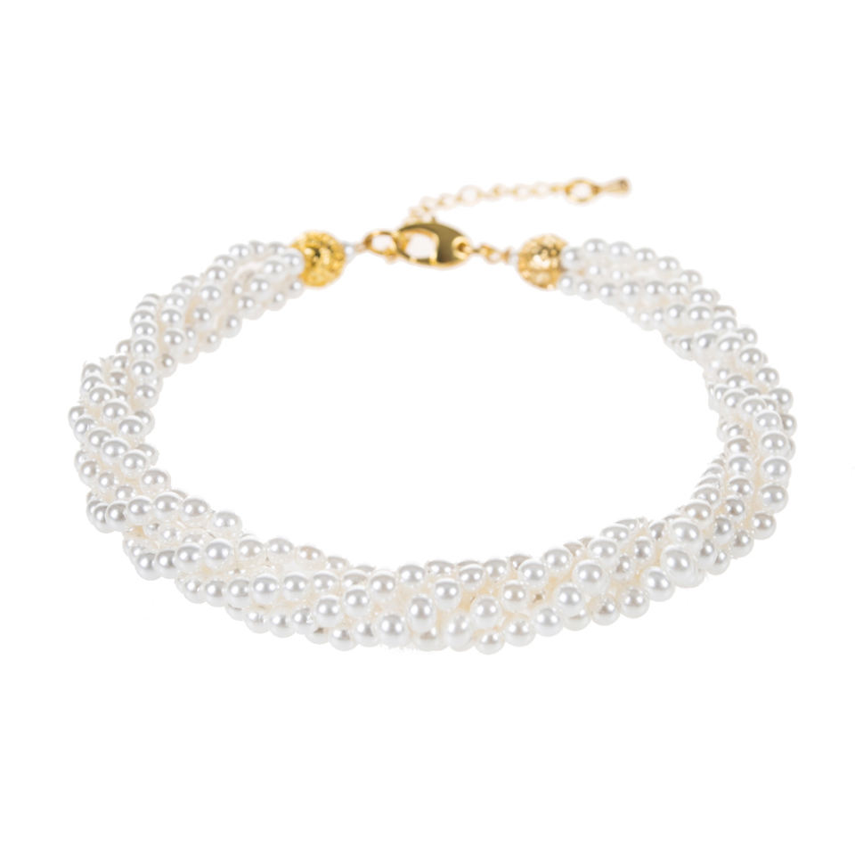 WENCHI TWB806 กำไลข้อมือประดับมุกเกลียวธรรมชาติ 4 แถว ดีไซน์หรูหรา