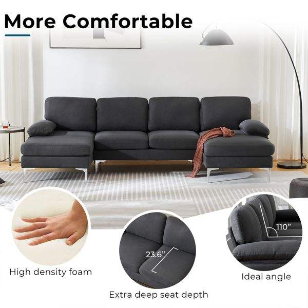 โซฟาในร่มรูปทรงตัวยู4ที่นั่งสีเทาเข้มแบบแยกส่วนสำหรับห้องนั่งเล่น