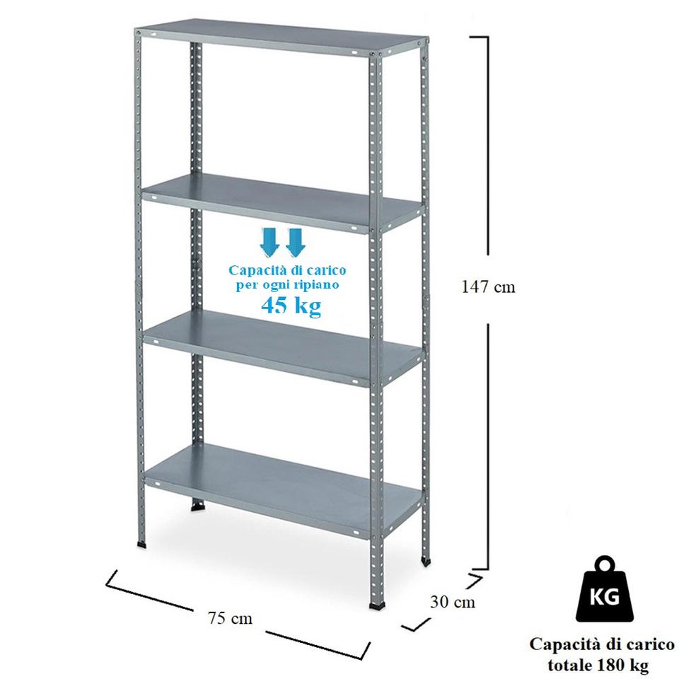 4-Tier Galvanized Metal Shelving Unit 75x30x147cm 180kg Capacity Sturdy Garage Warehouse Shelf