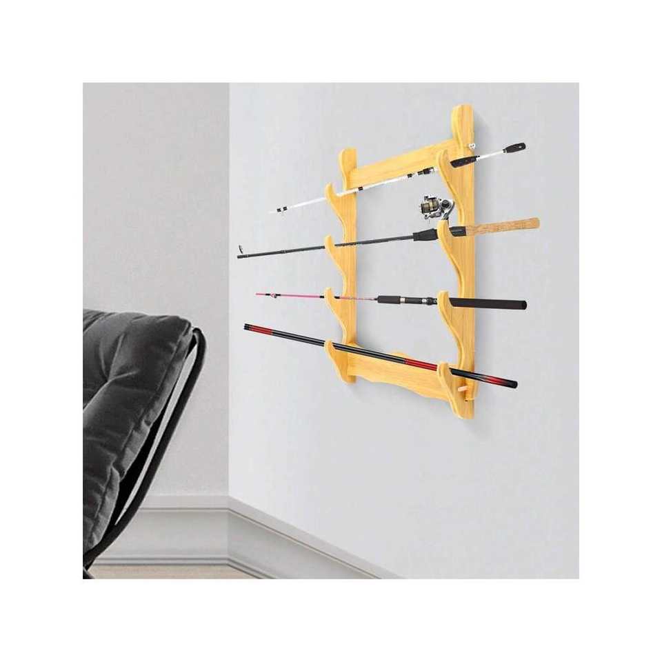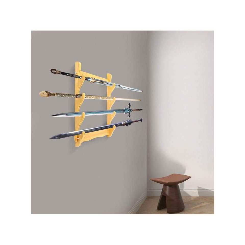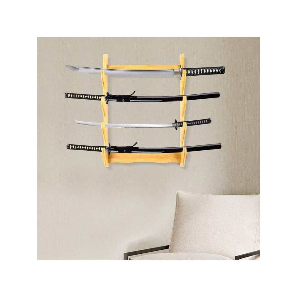 4-Tier Bamboo Sword Holder Display Stand Wall Mount Home Decor Organiser for Crafts Storage and Display