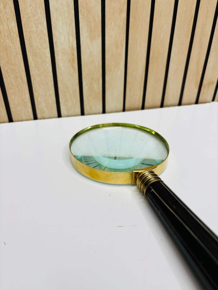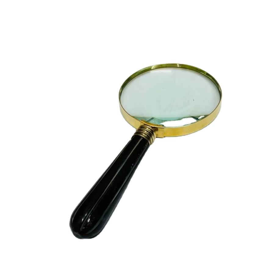 แว่นขยายทองเหลืองมือถือขนาด 4 นิ้ว พร้อมด้ามจับกระดูก