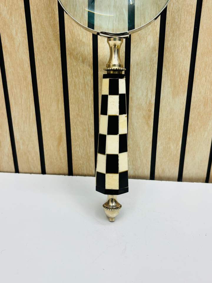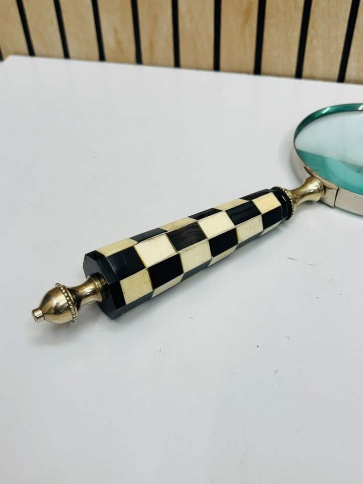 แว่นขยายสไตล์วินเทจ ขนาด 4 นิ้ว พร้อมด้ามจับเรซินลายตารางหมากรุก