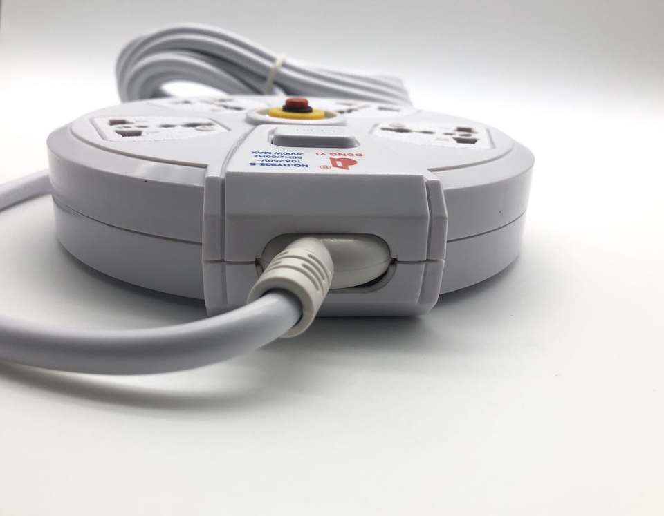 ชื่อ:ปลั๊กไฟต่อพ่วงแบบปรับแต่งได้พร้อมปุ่มตรงกลาง มี 4 ช่องเสียบ รองรับปลั๊กไฟสากล