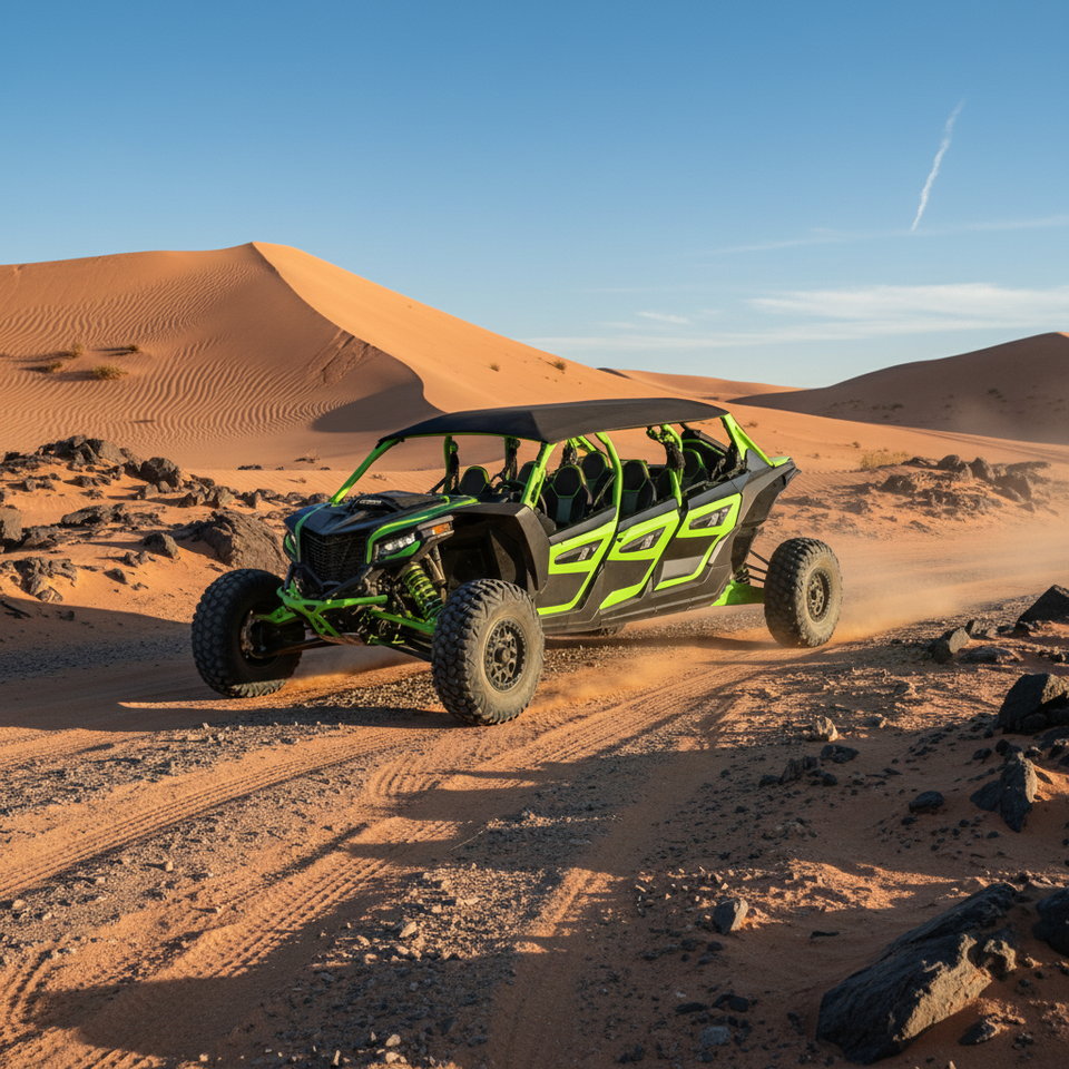 รถออฟโรด 4 ล้อ 6 ที่นั่ง เครื่องยนต์เบนซิน 1500 ซีซี พร้อมดิสก์เบรก ระบบขับเคลื่อนสองล้อ เสริมความแข็งแรงในการขับขึ้นเนิน