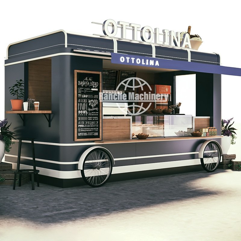 รถขายอาหารเคลื่อนที่ 4 ล้อ ไฟฟ้า ตัวถังอลูมิเนียมไฟเบอร์กลาส สำหรับธุรกิจขายขนม ทาโก้ บูร์ริโต้ พิซซ่า ชานมไข่มุก
